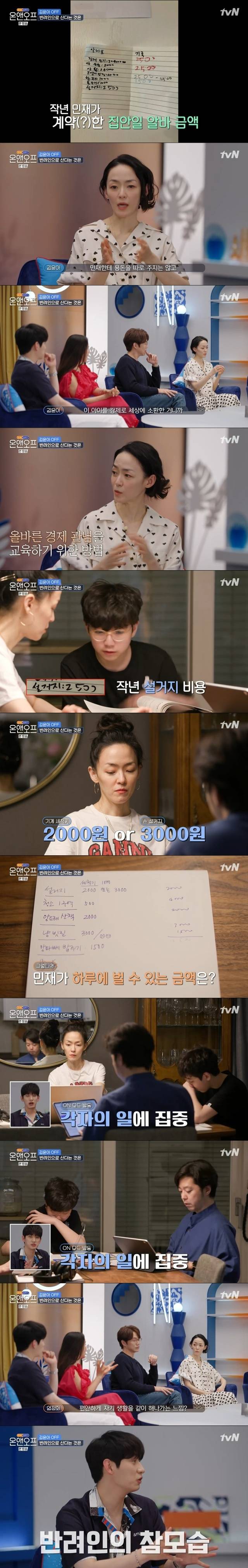 세 식구가 나란히 서서 요리하는 모습에 엄정화는 “어떻게 저런 그림이 나오지?”라며 놀랐고, 식사 후 더 놀라운 광경이 펼쳐졌다. 식사를 마친 세 가족이 각자 할 일을 가지고 다시 테이블에 모인 것. 그 전에 먼저 아들 김민재의 알바 임금 협상이 이뤄졌다.