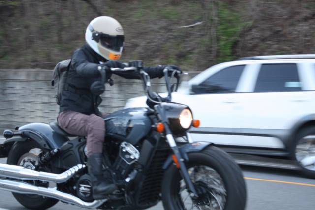 다만 문제는 포지션. 스카우트 바버 트웬티는 기존 ‘스카우트 바버’와 달리 벌 서는 핸들···아니 에이프 행어 핸들이 달려 있습니다. 풋페그(발받침)도 다소 앞쪽에 자리잡았구요. 손발을 쭉 뻗고 타는 바이크입니다. 이걸 덩치 큰 분이 타신다면 여유로워 보이겠지만 저는 잘못하면 정말 벌 서야 됩니다.