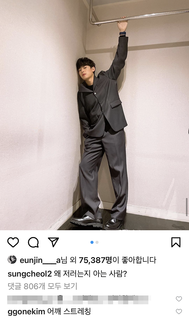 김성철이 "왜 저러는지 아는 사람?" 이라고 올린 인스타그램 이미지에 김고은은 "어깨 스트레칭"이라며 김성철의 포즈에 대한 드립을 남기도 했는데요.