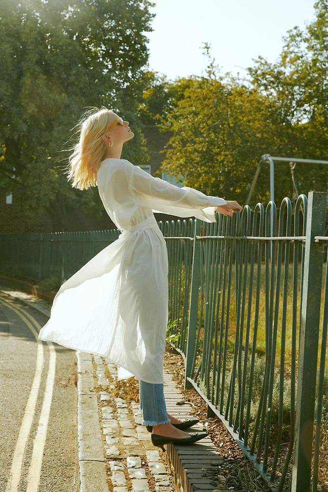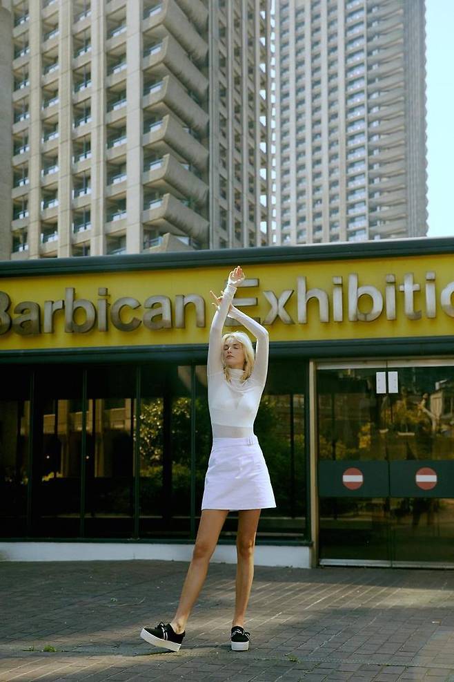 화보 속 모델을 하이웨스트 오버핏 데님 팬츠에