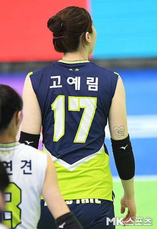 강하게 스파이크를 때리는 고예림의 오른쪽 팔 안쪽에 하트가 있다. 하트 안에는 곰돌이가 서로를 포옹하고 있는 앙증 맞은 타투다. 고예림은 한 인터뷰에서 친 오빠와 함께 새겼다고 밝히며 자랑하기도 한 타투다.
