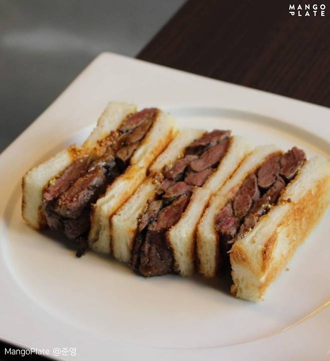 이곳의 대표 메뉴는 단연 가츠산도. 고기 실한 거 보세요. 부드러운 빵 사이에 두툼한 돈까스가 잘 샌드 되어 있는데요. 두툼해서 퍽퍽하진 않을까? 생각은 금물. 육즙 팡팡의 가츠샌드를 맛볼 수 있답니다. 돈까스 소스 맛이 잘 배어 들어 감칠맛이란 게 폭발한다!