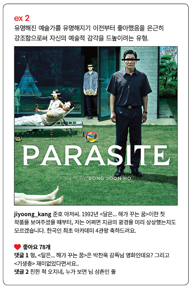 ‘나는 너네 같은 우매한 대중이 아닌 독보적인 감성을 지닌 예술가야’라는 걸 증명하고 싶지만, 사실은 고차원적 감각이 없기에 어떻게든 발악만 하는 안타까운 유형이다.