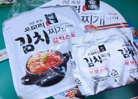 묵은 김치를 컨셉으로 한 GS25의 PB라면 제품인 오모리 김치찌개 라면은 농심 신라면을 제치고 GS25 라면 카테고리 매출 1위에 오르기도 했던 제품으로, 봉지 라면과 용기 면으로 출시되고 있다. 라면 재료로 오랜 기간 사랑받아온 김치를 이용해 씹는 맛이 살아있는 찌개 형태의 맛을 구현하기 위해 시장분석과 맛 테스트를 포함해 12개월의 개발기간을 거쳐 선보인 제품이다. 묵은 김치 맛을 그대로 살리기 위해 김치 원물과 김치찌개 양념을 레토르트 포장한 김치 스프가 별도로 들어 있다.