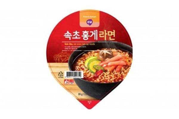 속초 홍게라면은 CU에서 강원도 속초의 명물인 홍게를 현지에서 공수해 재료로 사용한다고 한다. 홍게에서 추출한 깊고 진한 액상 소스로 맛을 내 담백하면서도 매콤하여 해산물을 좋아하는 이들이라면 좋아할 수밖에 없는 맛이라고. 동결하여 말린 홍게가 들어 있어 풍성한 식감을 자랑한다.