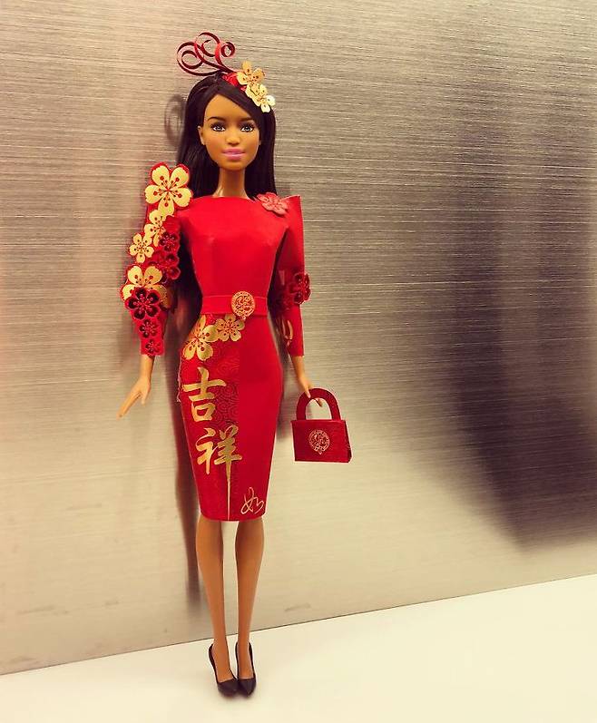 이 드레스는 모두 지안 양이 직접 만든 것입니다. 호텔에 있는 냅킨이나 휴지로 테이프를 이용해 바비인형을 위한 드레스를 만듭니다. 수집가의 손으로 직접 만든 인형 옷이라고는 상상할 수 없을 정도로 섬세하고 아름답게 어울립니다. 바비인형에 대한 사랑과 열정이 정말 대단합니다.