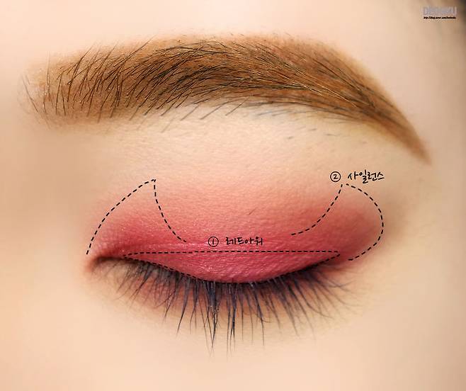 눈 앞머리부터 언더 중앙까지 쓸어주고