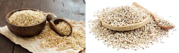 현미는 백미보다 비타민이나 무기질, 섬유소 함량이 풍부한 데 반해 열량이 낮아 다이어트 식단에도 자주 등장한다. 특히 현미 배아 부분에 포함된 피트산이라는 성분이 체내에 쌓인 독소를 배출해주는 데 도움을 주기 때문에 몸에 열이 많고 독소가 많은 아토피 피부에 좋다. 율무는 항알레르기 효과가 매우 뛰어난 것으로 알려져 있어 아토피 증상이 악화되는 것을 방지해준다. 또한 사이토카인이라는 염증성 물질의 생성을 억제하면서 열도 가라앉혀주기 때문에 간지러움이 심한 피부 위에 율무를 직접 갈아서 붙이거나 차로 섭취하면 도움이 될 수 있다.