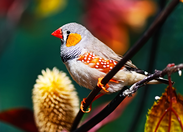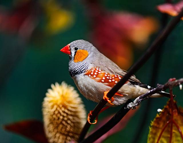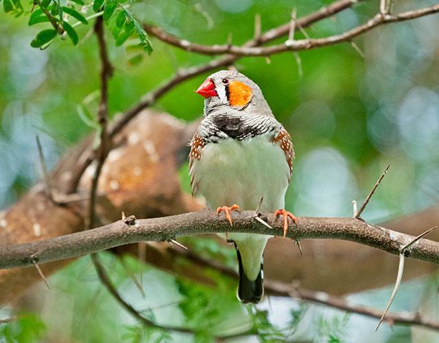금화조는 앞가슴에 가로 줄무늬가 얼룩말 무늬 같아서 제브라 핀치라고 부르기도 하는 작고 활동적인 새로 오스트레일리아 전역에서 무리지어 서식하는 새입니다.
