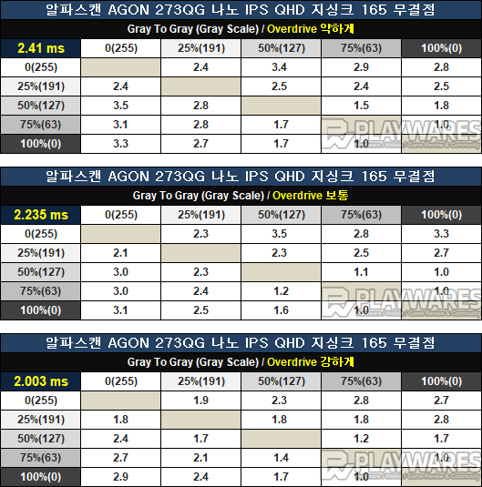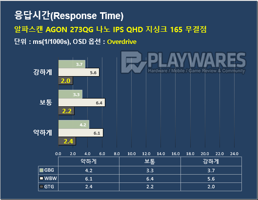 - 수치상의 응답시간 결과는 테스트 기준(MPRT, GTG)이나 방식에 따라 일부 차이 발생