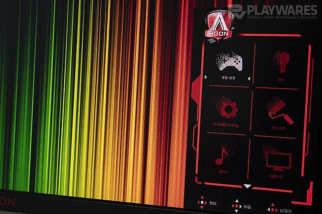 색상 표현과 관련된 부분에서 알파스캔 AGON 273QG 나노 IPS QHD 지싱크 165 무결점은 액정 내부 나노 분자를 이용해 보다 정교한 색상 표현력을 갖춘 장점이 있고 색역 역시 광색역 트랜드에 부합하는 DCI-P3 기준에 최적화된 모습을 보여주고 있습니다. sRGB 색상 표준을 지원하는 보통의 게이밍 모니터들과 비교할 경우 보다 더 진한 색상 표현이 가능하고 색상과 색상간의 디테일한 차이를 표현하기에도 유리한 구조를 갖고 있다는 점이 큰 매력입니다. 또한, 전용 OSD 메뉴인 게임모드와 게임컬러(게임색상), 섀도우컨트롤 등의 옵션을 조절해가며 화면 밝기는 물론 색 온도를 변화시키거나 시야 확보용 화면 및 채도 조절 등을 적용할 수 있다는 점에서도 상당히 좋은 옵션을 제공하는 게이밍 모니터라 표현할 수 있겠습니다. 핵심 성능과 더불어 시각적인 연출에서도 다양한 선택지가 제공되는 제품이라 보시면 되겠습니다.