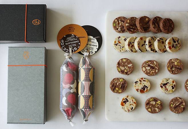 썰어 먹는 초콜릿이다. 수제 초콜릿 전문 기업 ‘트리투바’가 만든다. 약 20cm 길이의 원통형 초콜릿으로, 살라미 햄처럼 얇게 썰어 먹는다. 초콜릿 베이스에 크렌베리 등 건조 과일과 아몬드 등 견과류가 들어 있다. 단맛과 고소한맛이 잘 어우러져서 와인 안주로 그만이다. 온라인몰에서 10만개 넘게 팔렸다. 카카오 원두를 에콰도르 최고 ‘팔로산토’ 농원에서 들여와 만든다.