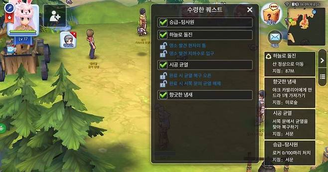 그리고... 사소하게 불편하다. 같은 NPC에게 연계 퀘스트를 받는 상황인데도 일단 완료하고 나서 다시 말을 걸어야 한다. 쓸데없는 진행이 추가되는 셈이다. 완료하고 나서 그다음 팝업이 나오지 않아서 별생각 없이 다음 퀘스트로 이동하려다, 그제야 연계라는 걸 깨닫고 다시 터치했을 때 느낀 그 불합리함이란.. 거기다가 연계 퀘스트를 받아도 그다음에 뭘 해야 하는지는 일일이 확인해줘야 한다.
