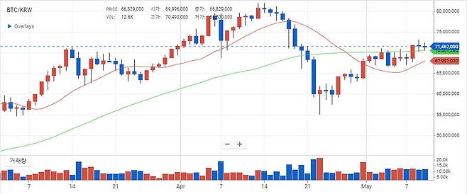 7천만 원을 돌파한 비트코인은 이틀간 잠시 횡보하고 있습니다.