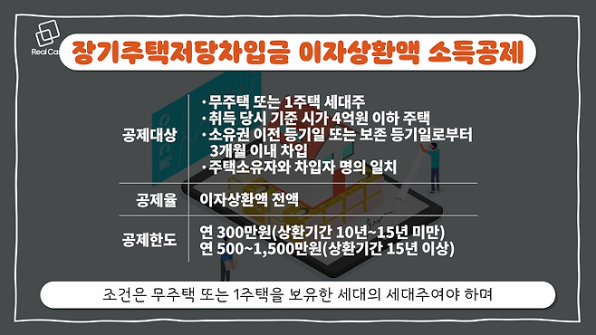 조건은 무주택 또는 1주택을 보유한 세대의 세대주여야 하며, 상환 기간과 방법 등에 따라 공제 한도액은 300만~1,800만원으로 구분됩니다.