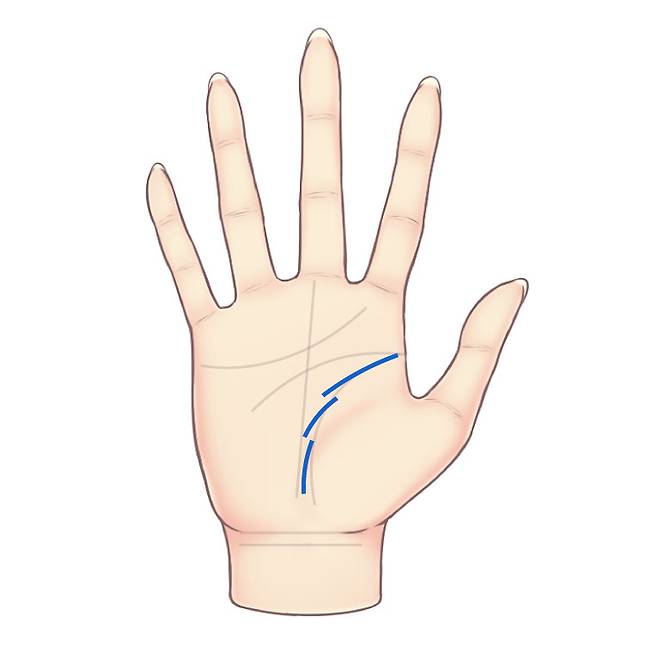 생명선의 길이는 수명이 아니라 그 사람이 가진 지구력이나 체력에 더 가깝습니다. 그래서 생명선이 짧은 사람들은 주로 조금만 움직여도 숨이 차고 어지럼증을 느끼거나 태생적으로 혈압이 낮은 경우가 많습니다.
