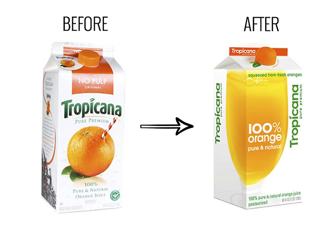 미국의 오렌지주스 회사인 트로피카나는 2008년에 Arnell Group이라는 유명 광고 회사에 리브랜딩을 의뢰했어요. 펩시의 리브랜딩을 이끌었던 유명한 회사였죠.