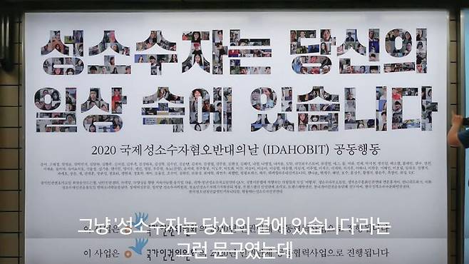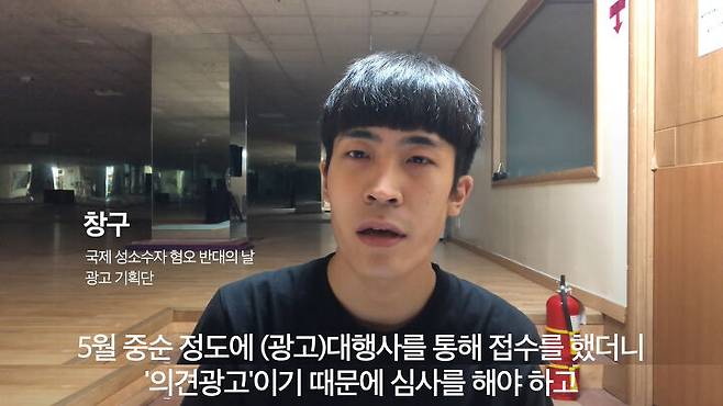 '의견광고'로 처리되어 심사를 받아야만 했던 거죠. 한 달 뒤 서울교통공사는 광고에 대해 '불승인 통보'를 내립니다. 광고 거부에 대한 뚜렷한 이유는 없었다고. 광고 사진에 참여했던 한 분은 이런 말을 전합니다.