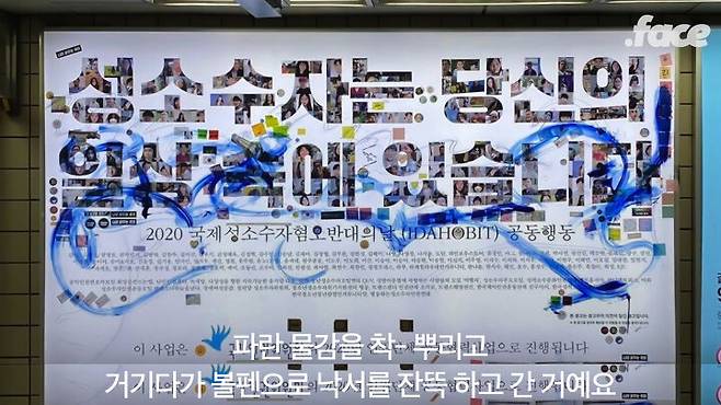 처음에 광고를 칼로 그어 찢었던 바로 그 사람. 다섯 번이나 계속해서 광고를 훼손했던 사람이 모두 같은 사람이었던 겁니다. 이 사실을 듣고 광고 기획단과 여러 성소수자들은 오히려 '다행'이라고 느꼈다고 해요.