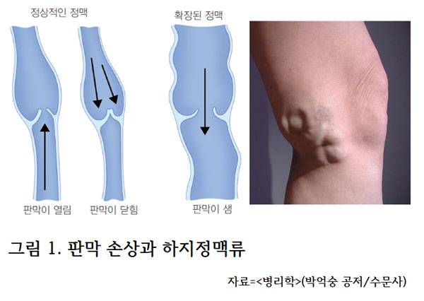 ‘하지정맥류(varicose vein)’는 정맥에 존재하는 ‘판막(valve) 이상’으로 역류를 막지 못해서 정맥혈관에 혈액 정체가 생기는 것이다. 흔히 다리의 얕은 정맥에 발생해 늘어난 정맥이 구불구불하게 보인다. 오래 서 있으면 다리에 불편함과 통증이 느껴진다. 간호사나 선생님처럼 주로 서서 일하는 직업군에서 많이 발생한다. 증상이 심하지 않다면 누워서 다리를 들거나 압박스타킹을 신어 정맥 환류를 도와주면 통증을 줄일 수 있다. 하지만 증상이 점점 심해지면 초음파를 통해 다리 깊은 정맥(deep vein)에 핏덩어리(thrombosis)가 있는지, 정확한 원인을 파악해야 한다. 상태에 따라 경화요법(sclerotherapy), 정맥절제술(phlebectomy), 고위결찰술(high ligation) 등 시술이나 수술이 필요하다.