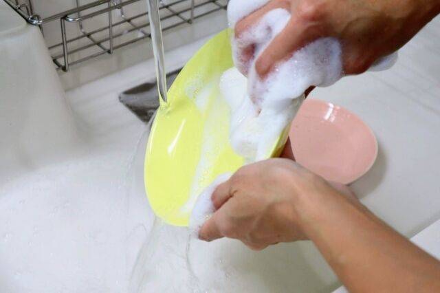 수세미에 세제를 2~3번 펌핑한 다음 최대한 거품을 내서 그릇을 닦아내는 게 흔한 설거지 법. 그러나 이 방법으로 설거지하면 세제가 그릇에 남고 음식과 접촉돼 몸속으로 들어갑니다. 이렇게 1년에 섭취하는 세재 잔여물이 소주잔으로 1~2잔 정도라는 연구 결과가 있습니다.