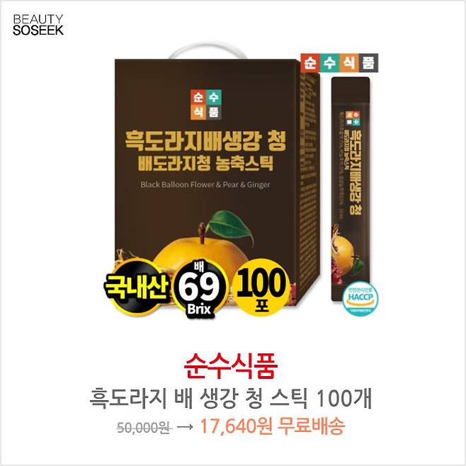 순수식품 흑도라지 배 생강 청 스틱 100개