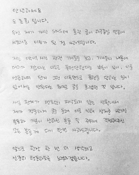 결국 "경솔했다"며 이수역 폭행을 언급한 점을 사과하는 자필 사과문을 업로드했어요. 앞으로는 신중히 행동하겠다고 하네요.