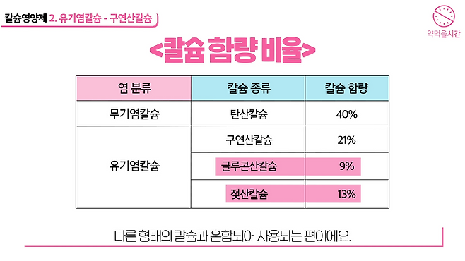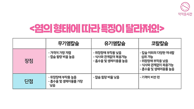 ‘무기염, 유기염, 코랄칼슘’으로 나눠서