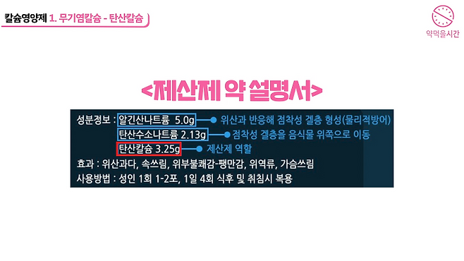 그래서 탄산칼슘 성분은 주로 위장약이나 골다공증 치료를 위해 처방조제되는 칼슘보급제로 나오고 있어요.