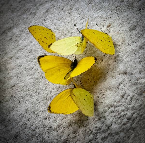 | ▲ 남방노랑나비의 짝짓기 거부 행동. 흰나비과에 속한 남방노랑나비 암컷이 꼬리를 한껏 치켜들고 수컷의 구애를 거절하고 있다. |