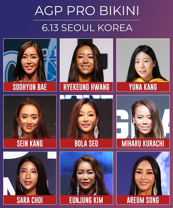2016년부터 개최된 아시아그랑프리(AGP) 대회는 세계 최정상급 IFBB PRO 선수들이 참가하고 있다. 한편 2021년 6월 13일 대한민국 서울에서 개최되는 AGP BIKINI PRO 대회는 9명의 대한민국 프로선수, 1명의 일본 프로선수가 참가할 예정이다.