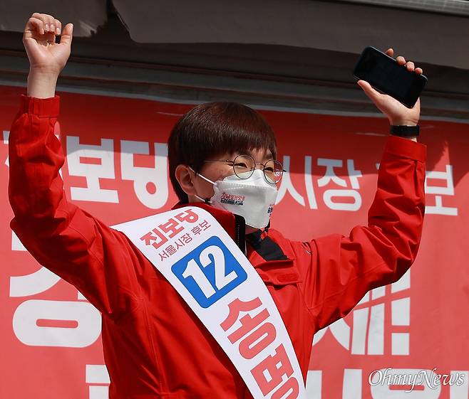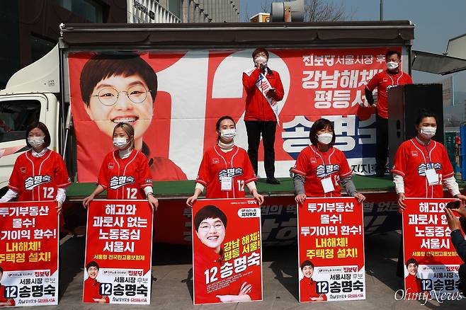 [오마이포토] 거리유세 시작한 진보당 송명숙 후보