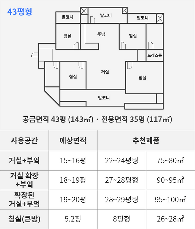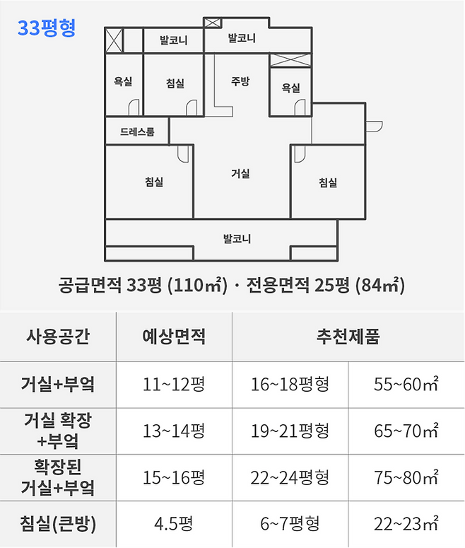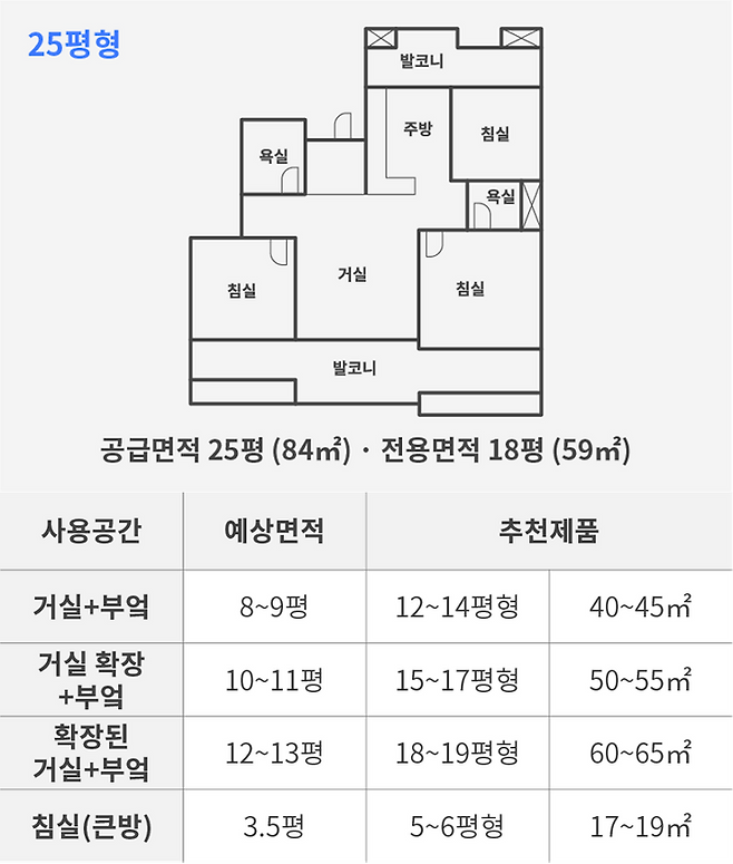 공간별 사용면적 추천