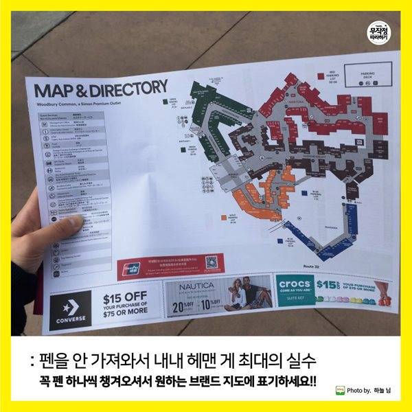 광활한 쇼핑 타운인 만큼 지도 없이 다니는 무모함은 비추천! 인포메이션 센터에서 미리 지도를 받아 구역별로 체크하며 다녀야 시간도 체력도 아낄 수 있어요.
