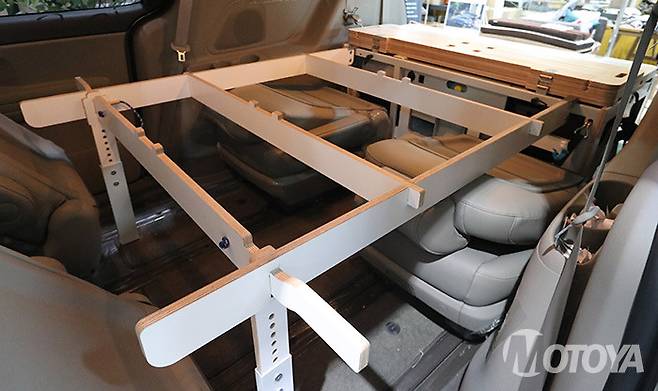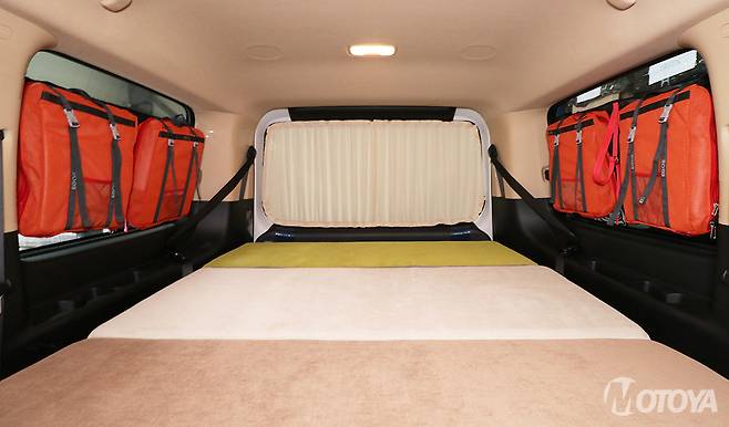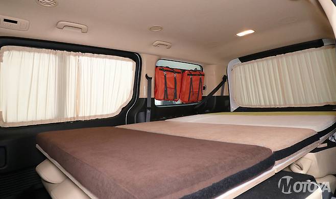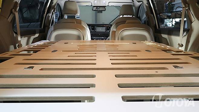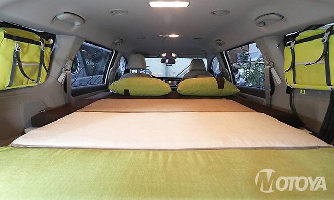 2열과 3열 시트를 접으면 두 시트의 높이가 거의 같아 수평이 되기 때문에 바로 그 위로 침대 패널과 매트리스를 펼쳐 침대로 사용이 가능하기 때문이다.