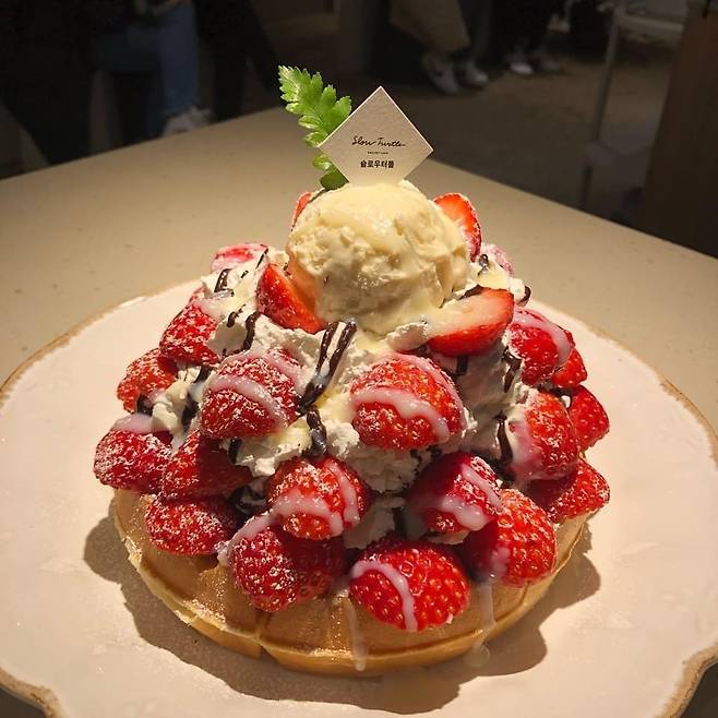 딸기케이크, 딸기와플, 딸기에이드, 생딸기 폭탄 프라푸치노, 생딸기 초코케이크, 생딸기 티라미수 등 딸기 디저트로 가득한 이곳은 대구에 위치한 카페다. 특히나 딸기가 산더미처럼 쌓여 있는 딸기 와플의 비주얼이 눈길을 끈다. 두툼한 와플에 생크림과 생딸기가 겹겹이 올라가 있으며 꼭대기에는 아이스크림이 달콤함을 더했다. 딸기가 아낌없이 들어간 수제 딸기 케이크도 인기 있으며 생딸기 우유와 아이스크림이 들어간 딸기쉐이크도 빠질 수 없는 인기 메뉴다.
