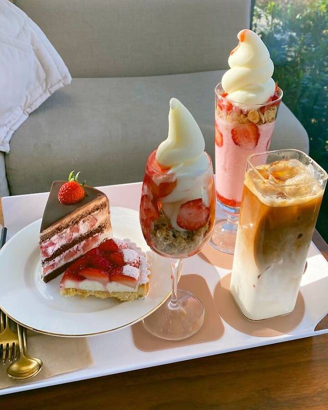 ▶메뉴: 딸기밭케이크1호(35,000원)ㅣ딸기크림치즈타르트(19,000원)ㅣ딸기파르페(6,800원)
