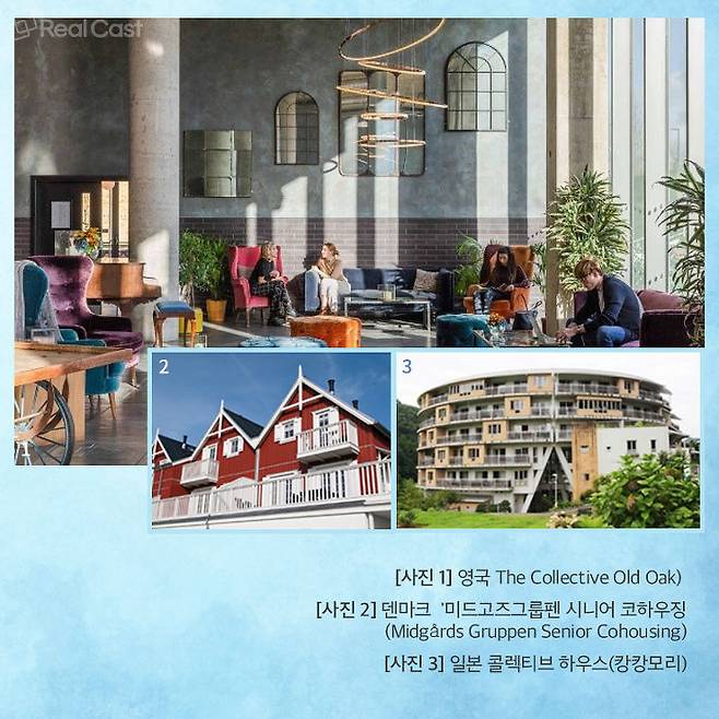 영국 올드오크(oldoak), 미국 뉴욕 어반 코리빙(urban coliving) 등 코리빙 하우스와 독일과 북유럽의 다양한 코하우징 시설과 일본의 컬렉티브 하우스(collective house)가 그 사례입니다.