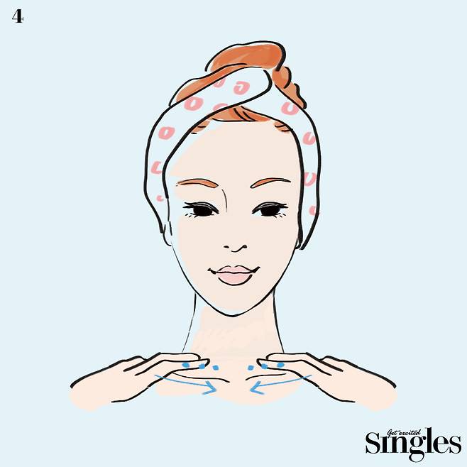 STEP 4 쇄골 바깥쪽에서 안쪽으로 부드럽게 쓸어내린다.
