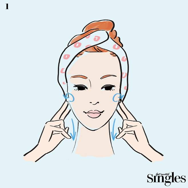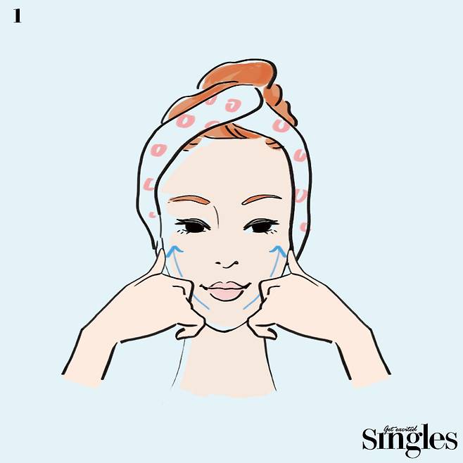 STEP 1 검지를 이용해 턱 아래부터 광대까지 페이스라인을 따라 쓸어올린다.