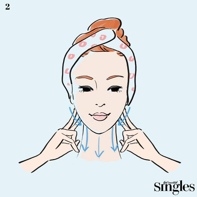 STEP 3 귀 밑에서 쇄골 쪽으로 이어지게 쓸어내린다.