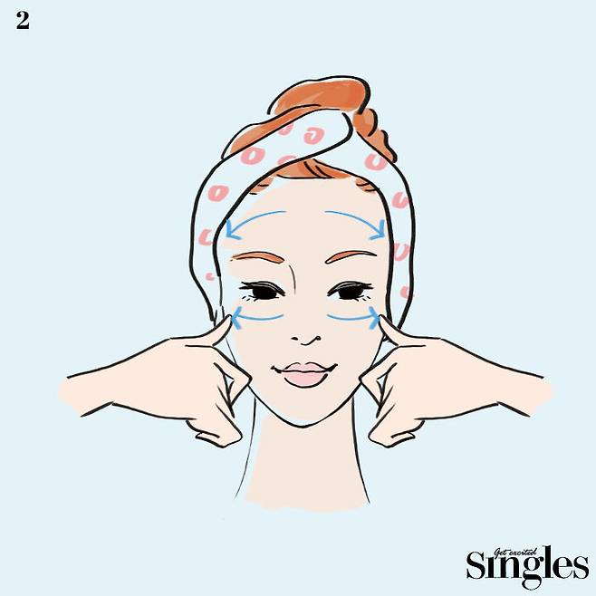 STEP 2 얼굴 중앙에서 바깥쪽으로 전체적으로 쓸어올린다.
