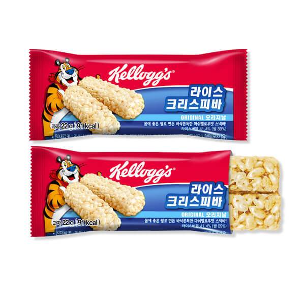 호랑이 기운이 솟아난다는 켈로그에서는 다양한 종류의 에너지바를 선보이고 있는데 그중 라이스 크리스피바 오리지널은 쌀을 베이스로 만들었기 때문에 마치 쌀 튀밥을 먹는 것처럼 바삭바삭하고 고소한 감칠맛이 느껴진다. 한 봉지당 91kcal라 먹으면서도 부담이 크게 없는 편인데 낮은 칼로리에 반해 단맛이 강한 편이라 축축 늘어질 때 한 입 베어 물기 좋다. 인위적이거나 자극적인 단맛이 아니라 좀 더 편하게 먹을 수 있는 편이기도 하다. 오리지널 맛 말고 초코맛도 있으며 쌀 대신 곡물 플레이크를 넣은 크런치넛바와 레드베리 시리얼 에너지바도 있다.