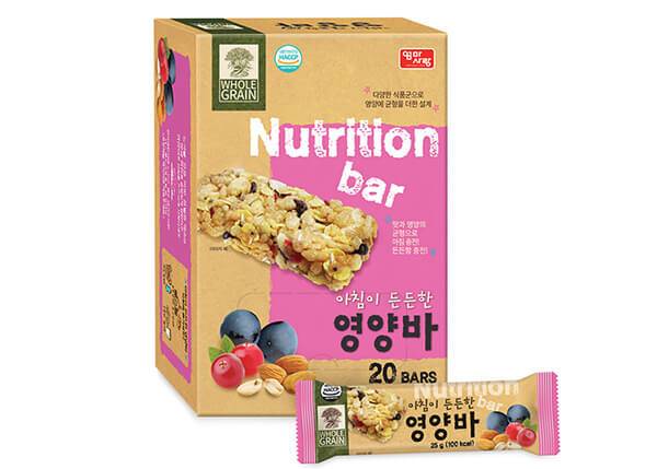 바쁜 일상에 균형 있는 영양을 챙겨주고 싶은 엄마의 마음으로 만든 건강한 에너지바로 아이들이 좋아하는 초코바, 중년 여성에게 좋은 아마씨드바, 다이어터들에게 꼭 필요한 햄프씨드바, 아침을 더욱 상쾌하게 하는 카카오닙스바 등 다양한 라이프 스타일에 맞춰 여러 가지 맛으로 출시되고 있다. 그중 영양바는 통곡물과 견과류, 씨앗과 과일, 채소의 맛과 영양을 두루두루 담아 온 가족이 즐길 수 있는 맛과 영양성분으로 채워져 있다. 특히 단백질 함량이 높은 편이라 학생이나 평소 단백질이 부족한 사람들에게 권하기 좋다.