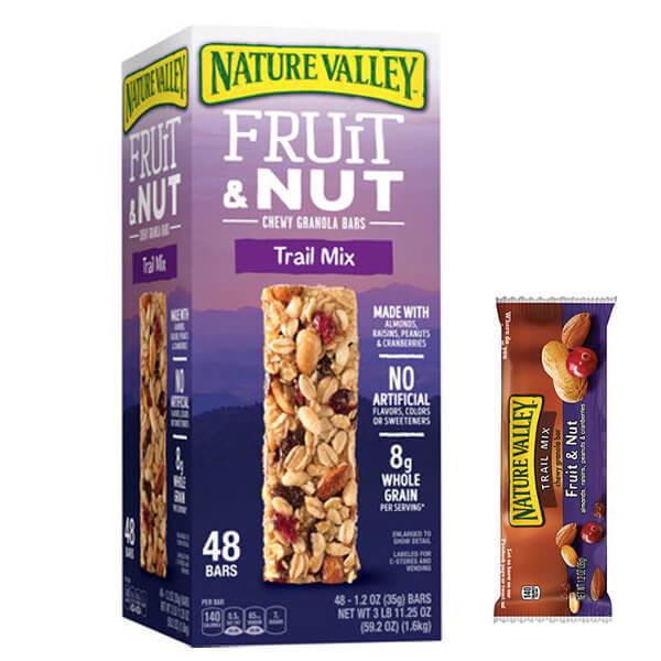 코스트코 간식거리로 유명한 네이처 밸리의 에너지바로 대용량 사이즈다 보니 개당 가격이 매우 저렴한 편이라 가성비 부분에서는 매우 좋은 편이다. 귀리와 아몬드, 땅콩, 크랜베리와 건포도를 넣어 만들어 고소하면서도 달콤한 맛이 특징이다. 끈적끈적하게 달라붙는 느낌이 조금 있기는 하지만 많이 딱딱하지 않은 편이라 먹는 데 큰 부담은 없는 편이다. 특히 우유나 두유와 함께 먹으면 그 고소함이 배가 되기 때문에 조각조각 잘라 시리얼처럼 우유에 넣어 먹어도 좋다.