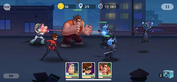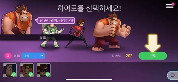 > 세 명의 히어로를 선택해 전투를 시작한다