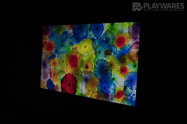 디스플레이는 VA 액정 방식으로, 시야각이 극적일 경우 화면의 밝은 정도가 조금 다른 편이나, 색상 자체가 크게 왜곡되는 경우는 확인되지 않고 있습니다. 광시야각 미지원 디스플레이에 비해 다양한 화면 배치에서도 최대한 일정한 화면을 유지할 수 있는 게 장점입니다.