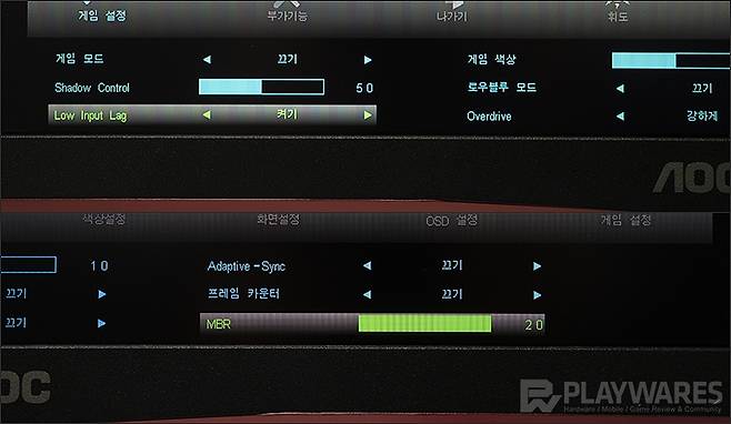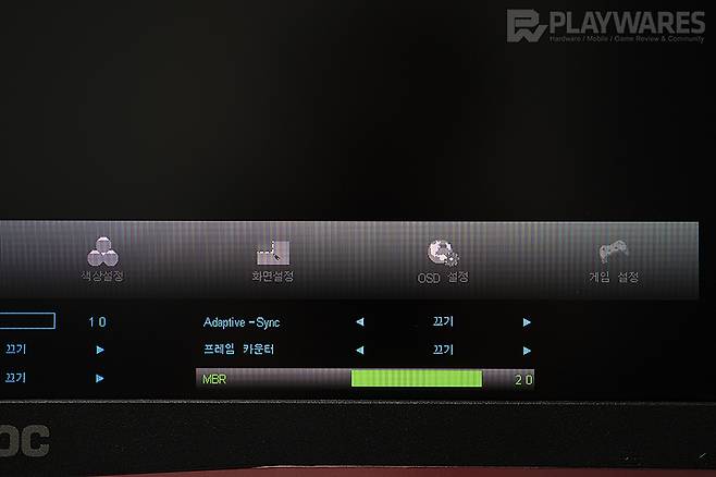 - 잔상 감소 기능 MBR은 FreeSync와 동시 적용 불가. 2개의 모드 활용시에는 다른 하나의 기능을 비활성화 시켜주는 과정이 필요