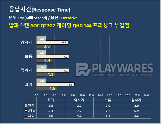 - 응답시간의 세부 수치는 테스트 기준(MPRT, GTG)이나 방식에 따라 일부 차이가 발생할 수 있음
