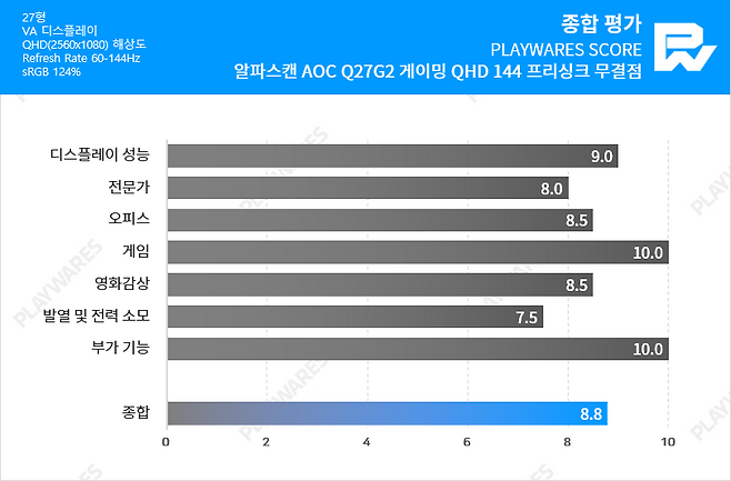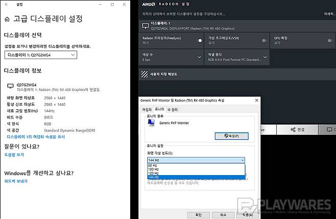 - QHD(Quad-HD, 2560x1440) 해상도 기반, 최대 주사율(Refresh Rate) 144Hz 지원 고성능 게이밍 모니터